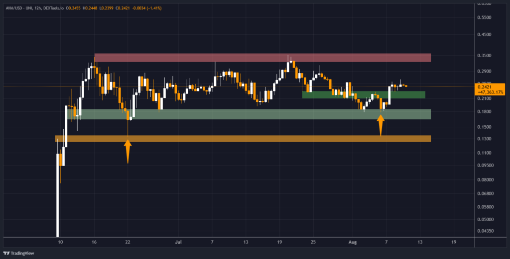 The price of AVM/USD is consolidating after a sharp rebound from the $0.16–$0.19 demand zone, showing signs of strength that could pave the way for a breakout toward its next major resistance. At the time of writing, AVM is trading near $0.242, holding firmly above a recently reclaimed support band.