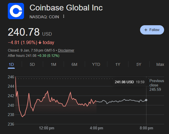 Coinbase shares recently traded near $240,