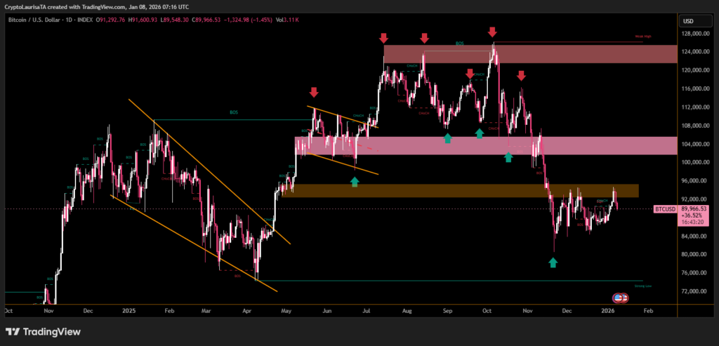 At present, Bitcoin is trading near the $91,000 level, down from recent weekly highs. Despite the pullback, the asset remains relatively stable and has avoided the sharp drawdowns seen in previous cycles.