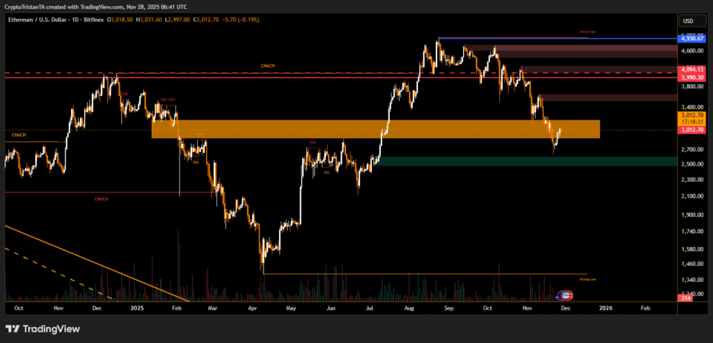 Lee also noted expectations of a dovish turn from the Federal Reserve by year-end, which he believes could relieve market pressure and support upward momentum for both Ethereum and Bitcoin. Bitcoin is currently trading near $91,309, while ETH sits around $3,018, reflecting recent market volatility.