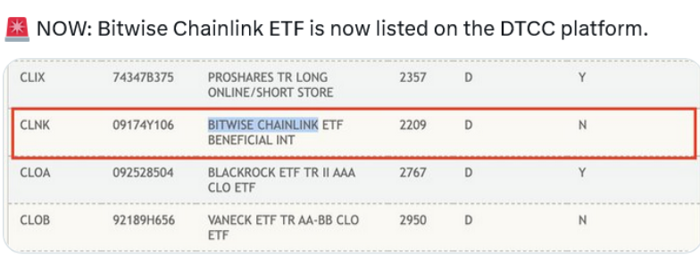 The appearance of the Bitwise Chainlink ETF on the DTCC list signals not just a potential product launch, but a broader shift toward recognizing Chainlink’s role in connecting real-world data with on-chain ecosystems.