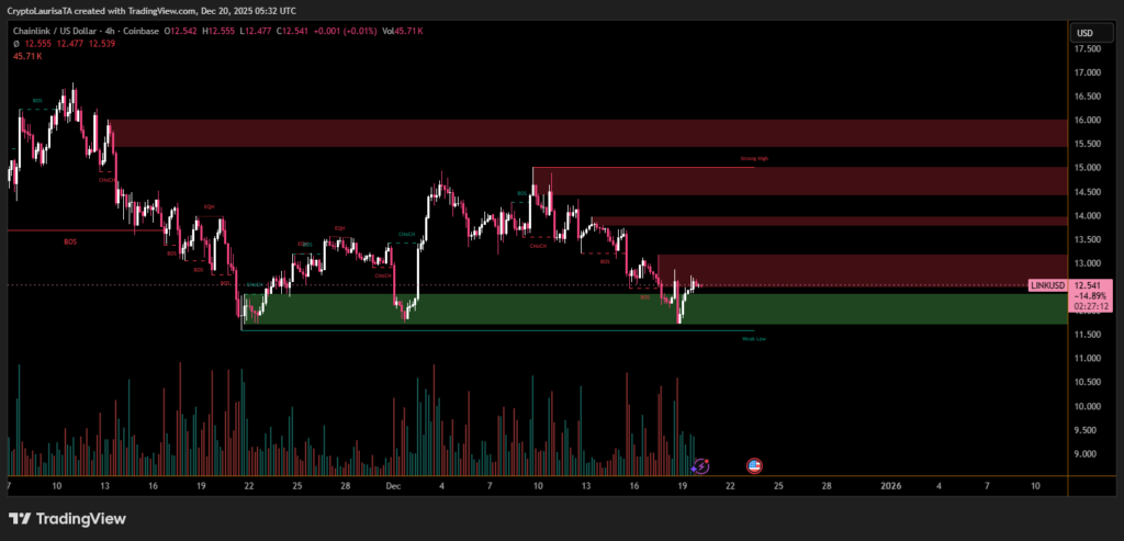 In the near term, LINK’s outlook depends on its ability to hold above the $12 support region. A sustained hold could open the door for a gradual move higher, while a breakdown would expose the token to renewed downside risk.