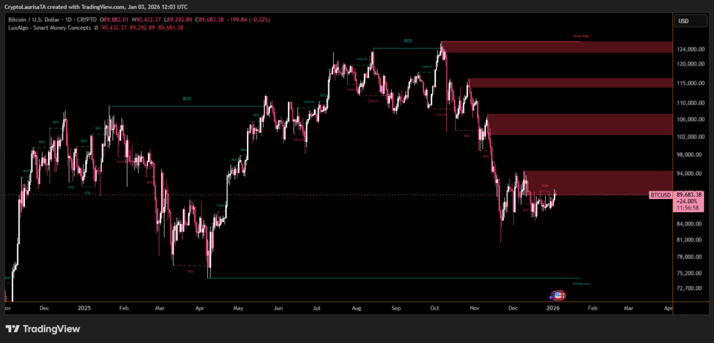 Bitcoin is currently trading just below the $90,000 level, showing short-term strength despite a broader monthly pullback. Analysts highlight that a rapid move toward $92,000 could act as a psychological trigger for retail investors. Historically, sudden price surges often invite fear of missing out (FOMO), which can lead to unstable market conditions if driven by emotion rather than fundamentals.