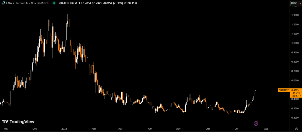 The explosive rally in ENA underscores the market’s appetite for yield-generating governance tokens backed by real protocol utility.