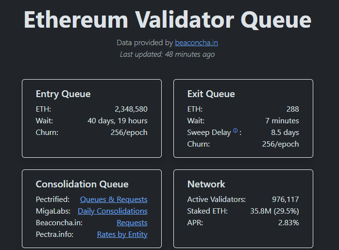 Ethereum’s validator ecosystem has expanded alongside this growth. There are roughly 900,000 active validators, with additional ETH waiting to enter staking. Meanwhile, validator exit activity remains subdued, suggesting that existing participants are choosing to stay invested rather than unlock their holdings.