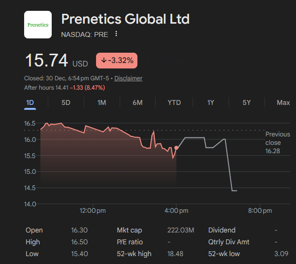 Following the announcement, Prenetics shares declined 3.32% in Nasdaq trading, though the stock remains up nearly 170% year-to-date, reflecting broader investor confidence in its core health and nutrition business.