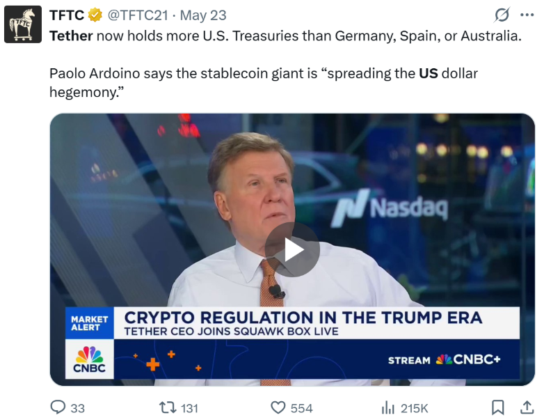Furthermore, Tether (USDT) — the largest stablecoin — holds over $113 billion in U.S. Treasurys, more than entire countries like Germany. This makes stablecoins not only payment tools but also major institutional players in traditional finance.