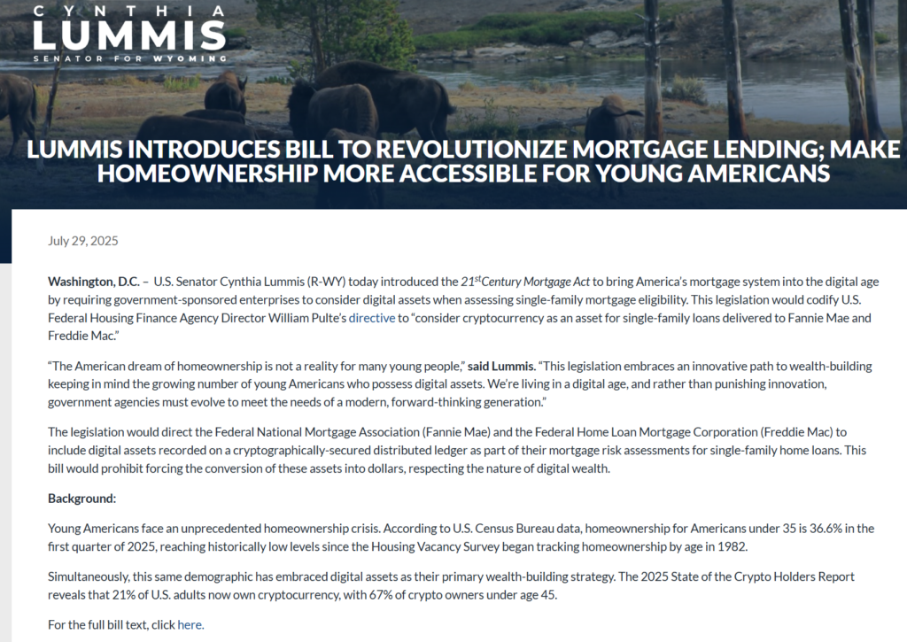 Newrez executives noted that nearly half of Gen Z and Millennial investors hold cryptocurrency, positioning digital assets as an increasingly relevant part of household balance sheets. The policy aims to broaden access to homeownership, particularly for younger buyers whose wealth may be concentrated in crypto rather than traditional investments.