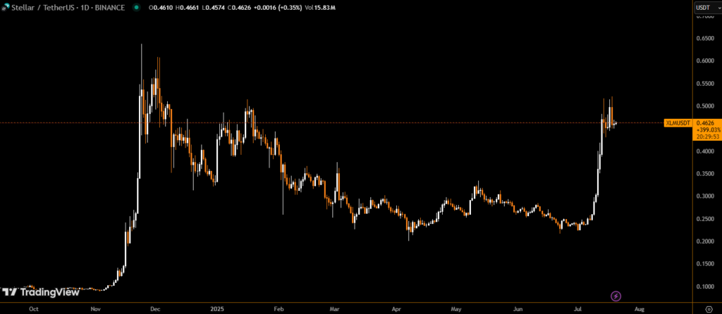 This past week, Stellar (XLM) attracted renewed investor attention after XRP surged to a new yearly high of $3.60, marking a nearly 20% jump in 24 hours. Analysts now believe XLM could mirror XRP’s momentum, driven by its close association with cross-border payments and increasing interest in utility-driven crypto assets.