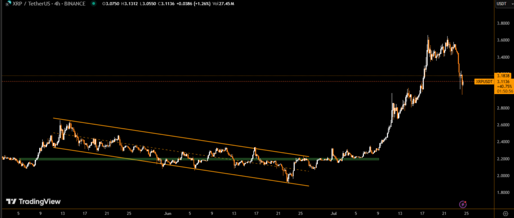 As XRP hovers around $3.10, the coming days will test whether the market can absorb this selling pressure—or if the price will break further.